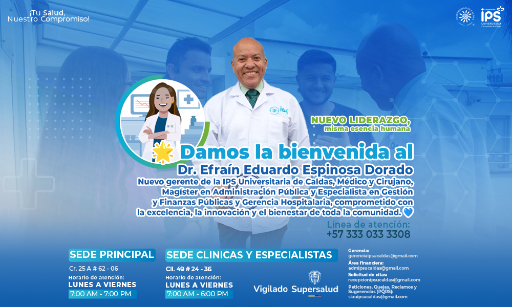 La IPS Universitaria de Caldas da la bienvenida al Dr. Efraín Espinosa Dorado, nuevo gerente comprometido con la excelencia en salud.